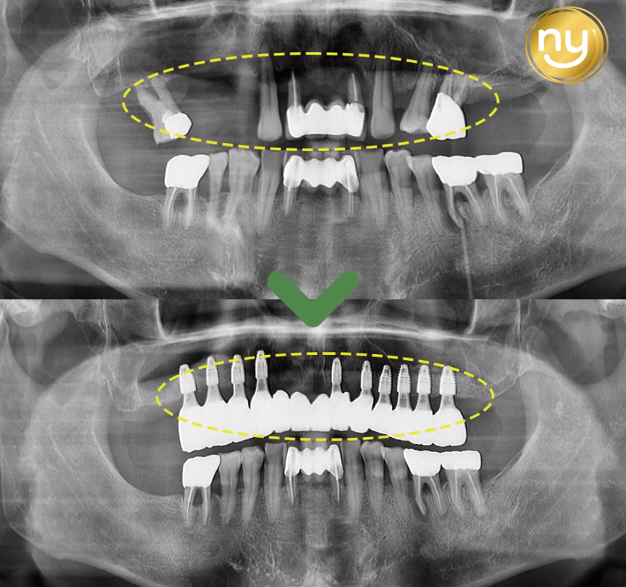 상악에는 임플란트 총 10개를 식립하였고,