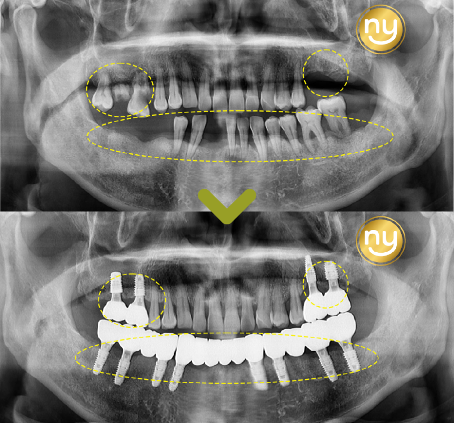 남은 치아들도 염증과 잇몸뼈의 소실로 살릴 수 있는 치아가 없었습니다.