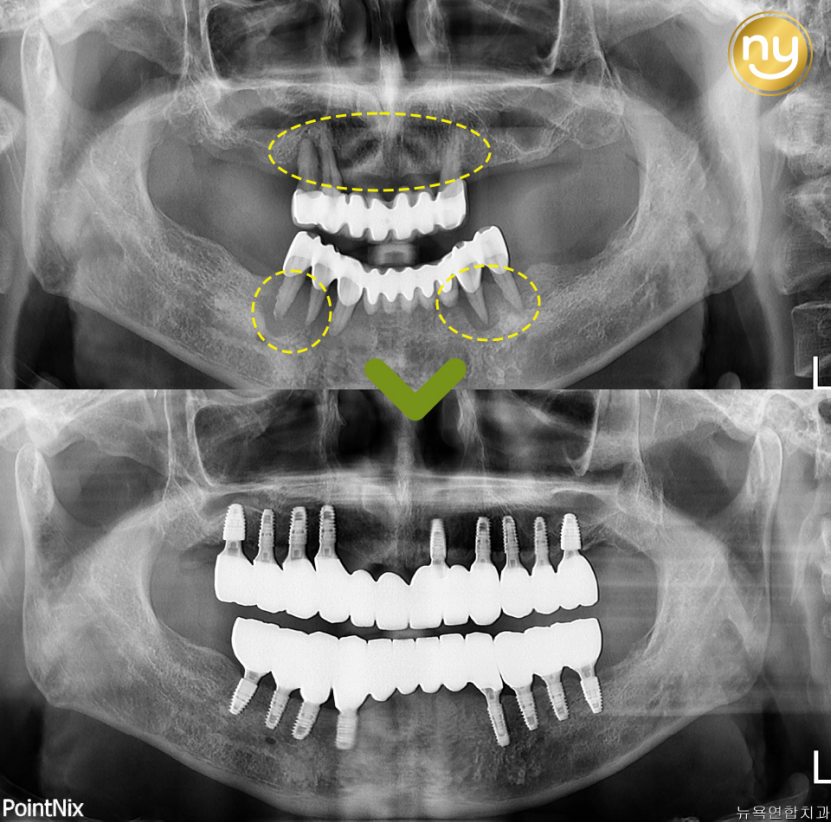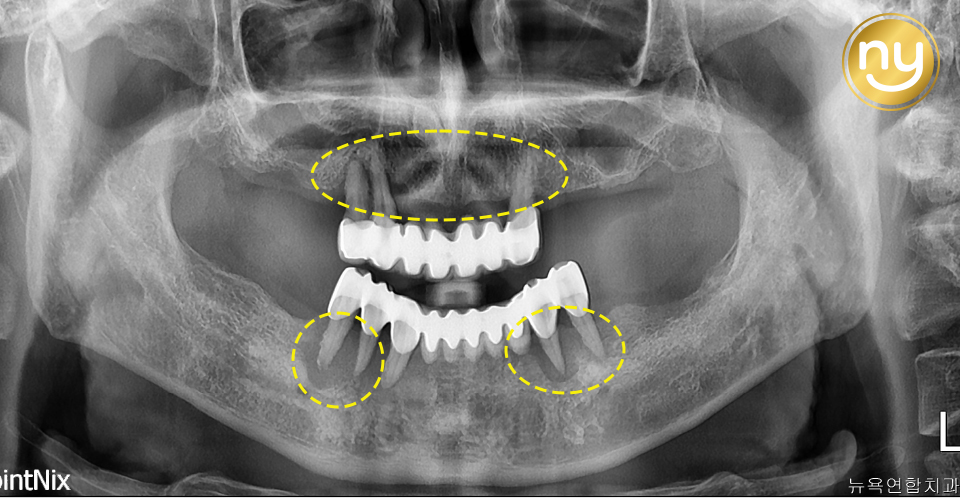 오늘은 울산삼산치과 뉴욕연합치과에서 구강의 남은 치아들에 모두 염증이 생기면서